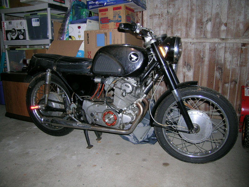 I've owned my 1963 CB77 for about 6 years I think, but I only rode it a few times right after purchase. Mileage on the odometer is 17,559, which is believable. I bought the bike on the south shore of Massachusetts (Rehoboth), brought it up to the Boston area, and now it's with me in Indianapolis.