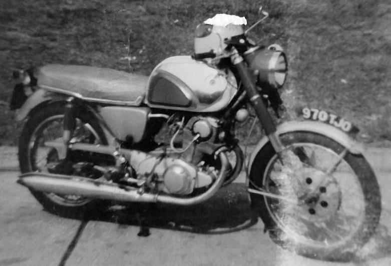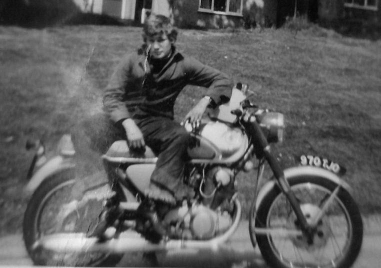 I got my first bike, a 1957 James Captain -- Villiers 197cc -- at 15 in 1970. I stripped it and repainted it metallic orange (in tribute to my true desire -- a '69 Honda CB250!), ready for riding legally on March 2 1971. I passed my test in May of that year and bought my first CB77 the day after; pic re-posted.