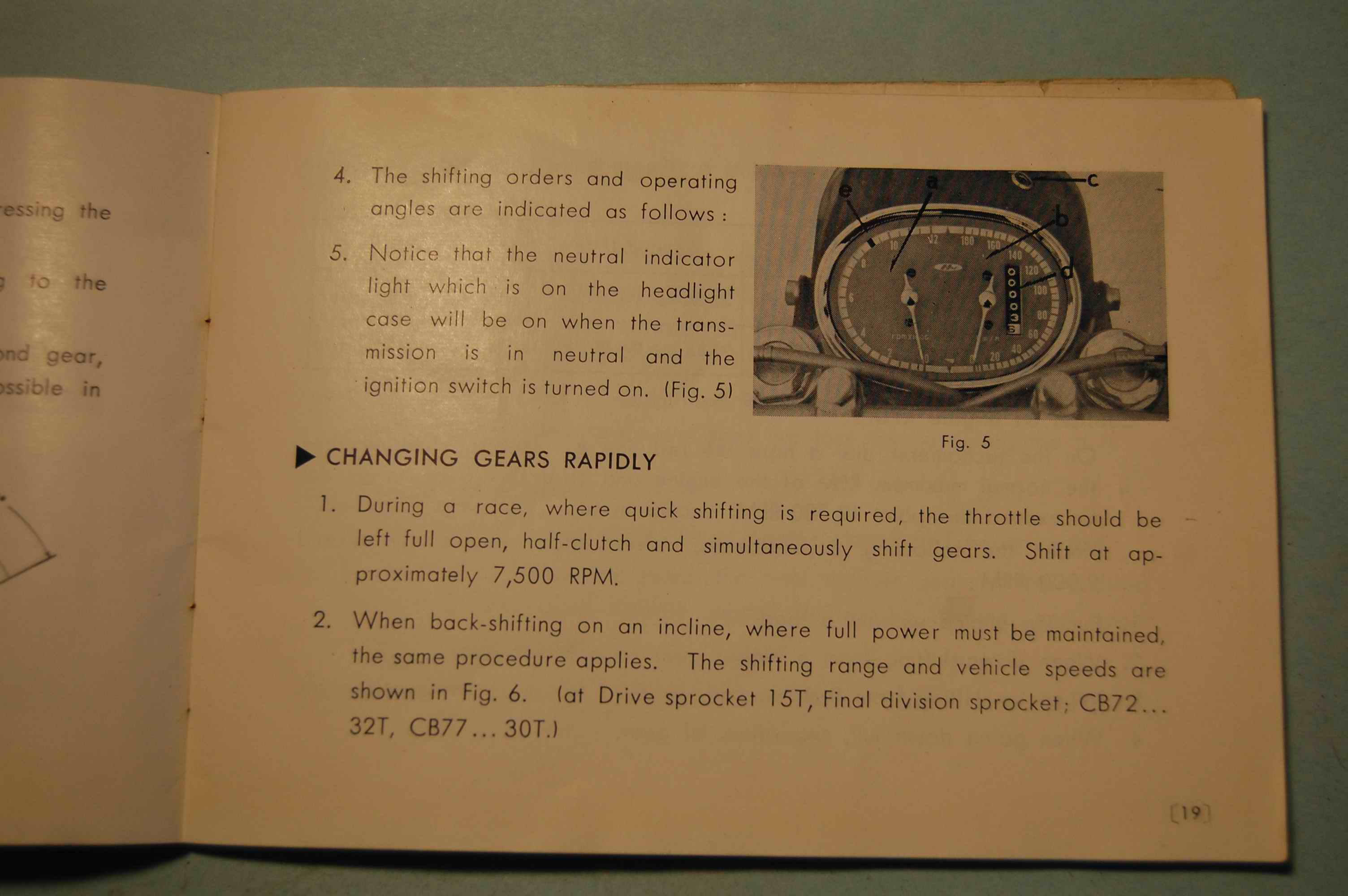 Thanks for the owner's manual pictures, they are great. I concur with the RPMs you suggest. I try to keep my CB77 between 4000 and 6000 when cruising through the twisty roads through the mountains just N of Los Angeles.