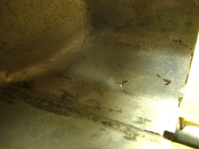 A possible crack inside the case on the left side under the rear shaft. I don't think it's a problem, but I've been wrong once or twice. Okay, according to my wife, many times.