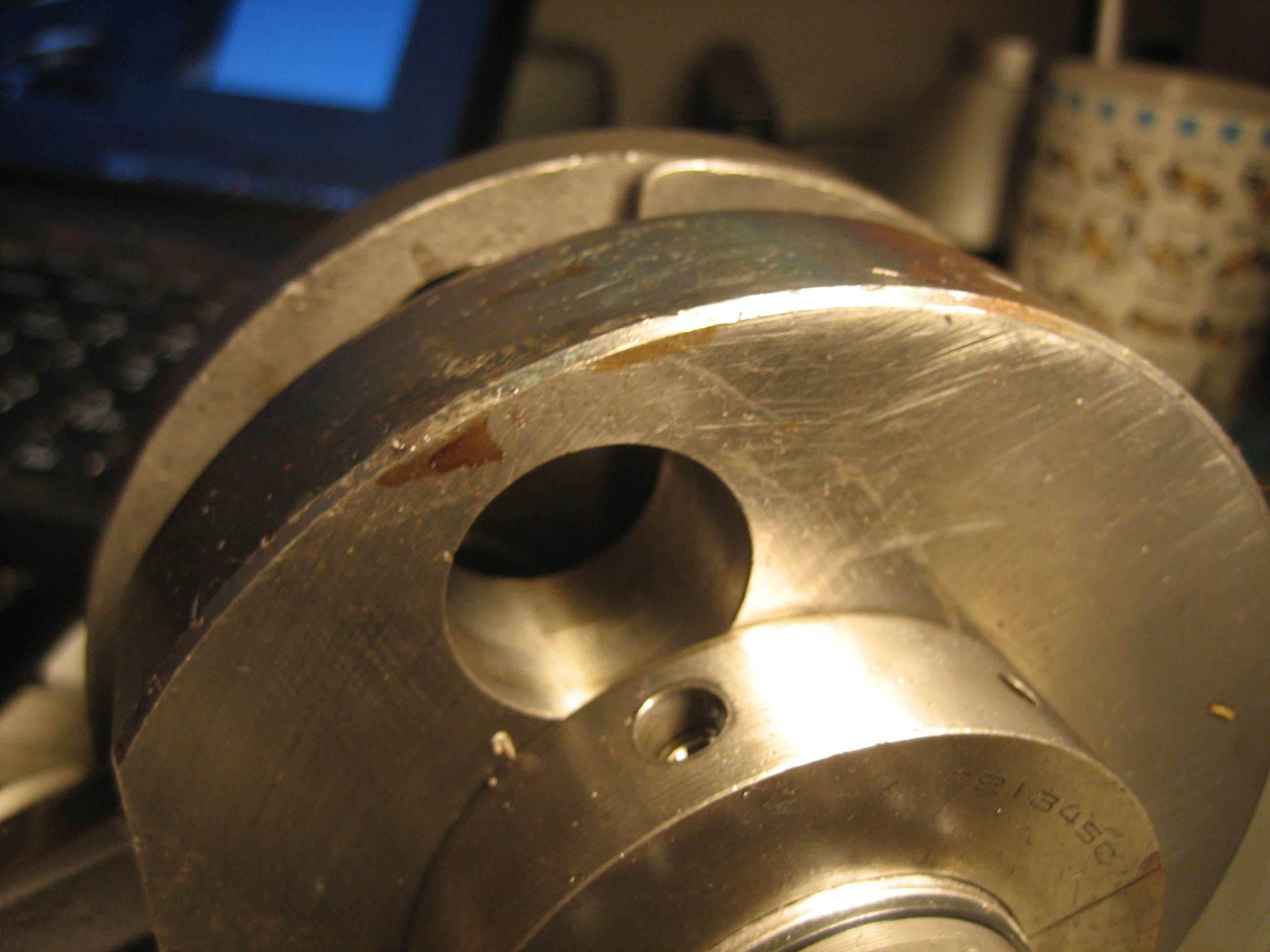 And the part of the crank with the blue part we're seeing seems to be around a lightening hole. Is it blue near the big end pin, or just out there? Since it's the web on the inside, the implication is that the inner bearing on that side may have a problem.
