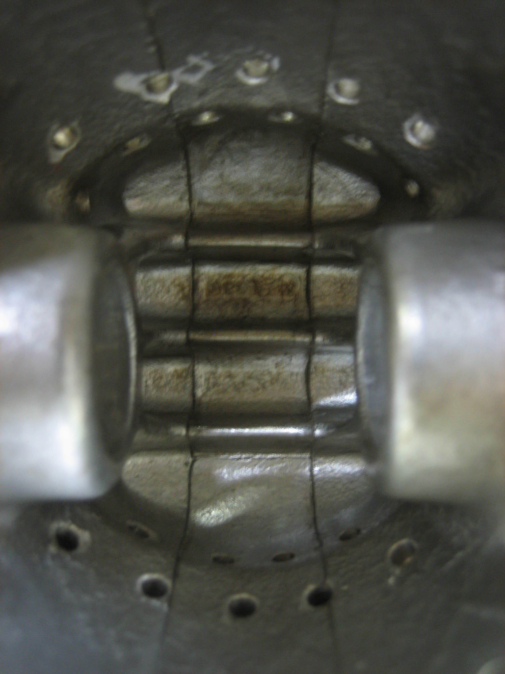 As for the blued crank, under good light I can now see that there is a band of bluing that wraps the hole in the crank below the blued surface we were looking at in the previous photos. The odd thing is that it is only visible from the rough cast side of the crank (first pic). I can't see anything on the other machined side of the crank weight (second pic).