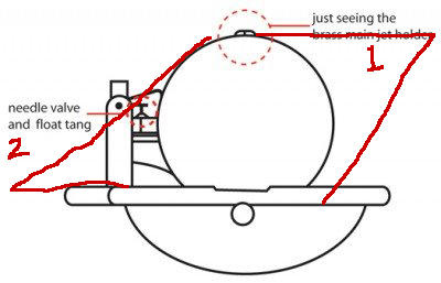 i am judging by horizon at the base of the carburetor. where the gasket lies. I make that as straight as possible and then look to see if the main jet housing is in view... or am i suppose to judge at the top of the floats??