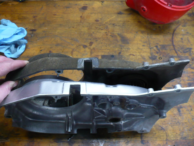 Here is my kick side cover compared to a later issue cover in the top photo. They moved the clutch cable joint further forward. If you reference the bottom photo where the kick starter gear passes through you'll notice they reinforced the area, a little more "beef" to lessen the likelihood of cracking the cover.
