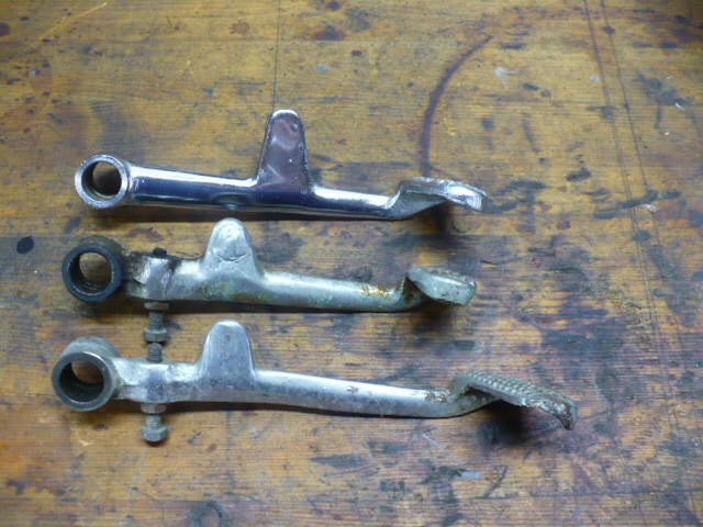 You're spot on with the brake pedal. The photo shows my '62 in the middle. The top one is a race kit pedal, 46500-268-810. The bottom one was in my parts bin from a later bike.