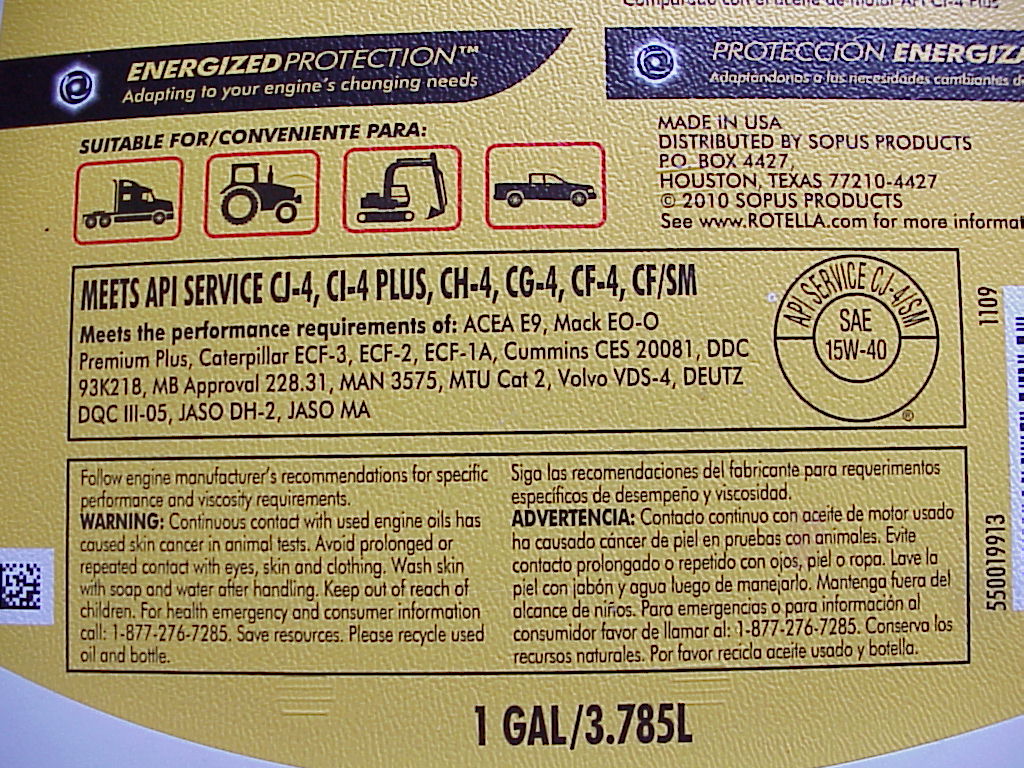 Here is the link to the Rotella website listing their products. If you click on the icons, it will bring up the spec for each oil. http://www.shell.com/home/Framework?sit ... _home.html