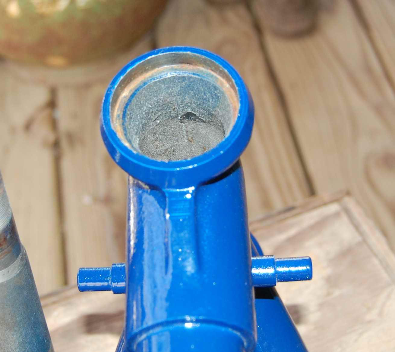 Some old paint overspray remains inside steering fork tube. Looks like a pretty close match.