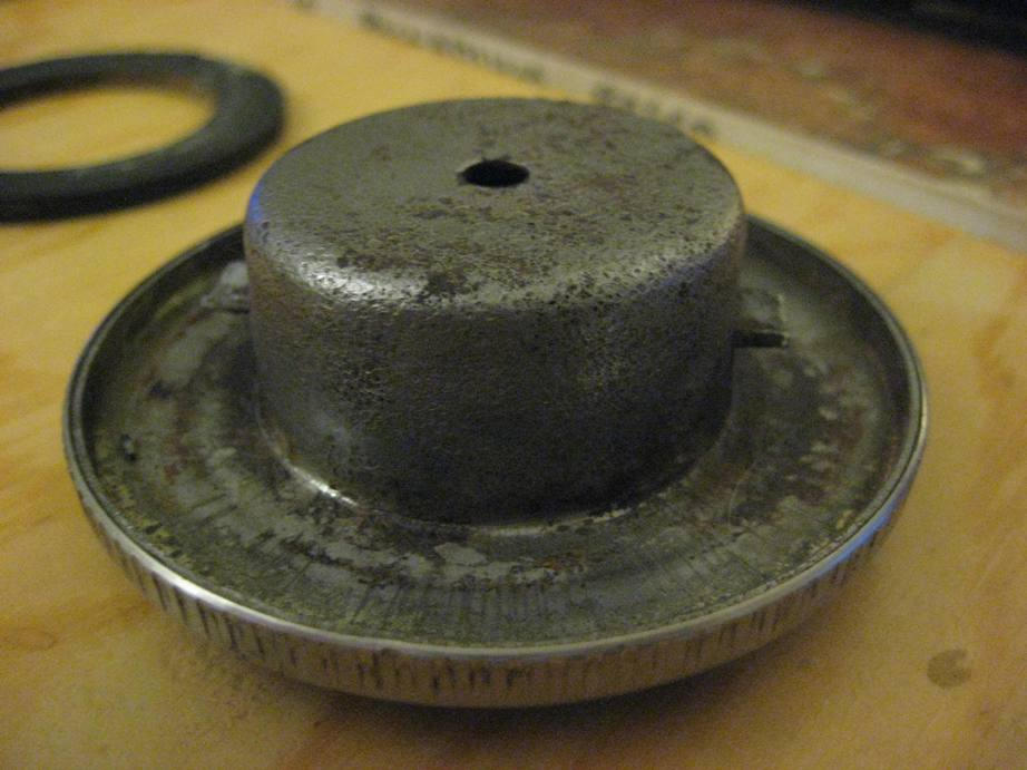 I read through this thread trying to find an answer to my own problem. My gas cap is not venting, and danged if I can find any vent hole on the underside of my gas cap at all. I was getting some very expert help with my clutch earlier (thanks LM!) and went out for a ride only to be stymied by a bad gas cap. Here are some pics with the rubber gasket removed. Where should this vent hole be? Is this the wrong cap for my bike perhaps? I'm showing the underside of the cap from 12 oclock, 3 oclock, 6 oclock and 9 oclock. Oh, and I'm taking this opportunity to clean this cap up a bit with some steel wool...