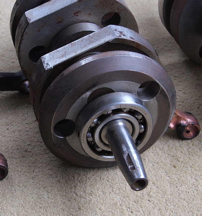 Here's the bearing on my C72 crank. No oil hole in the bearing - just a locating peg hole in the outer race. This is where my original crank post began. This is a for a motor with a starter clutch but it has no oil feed / return.