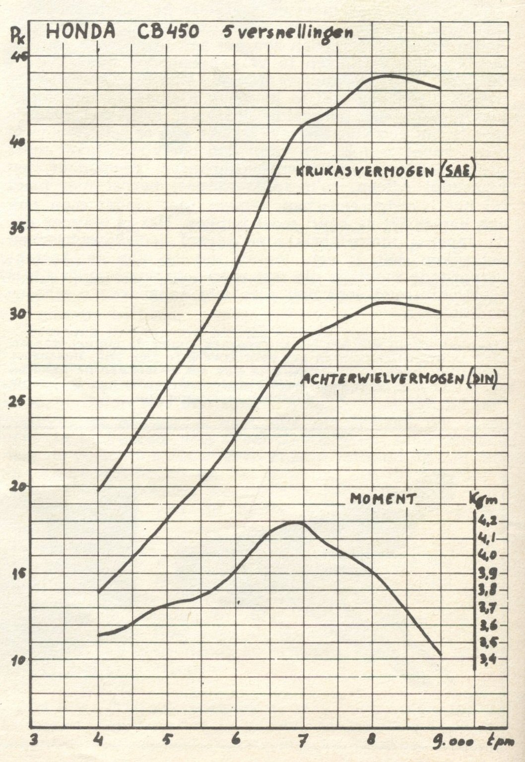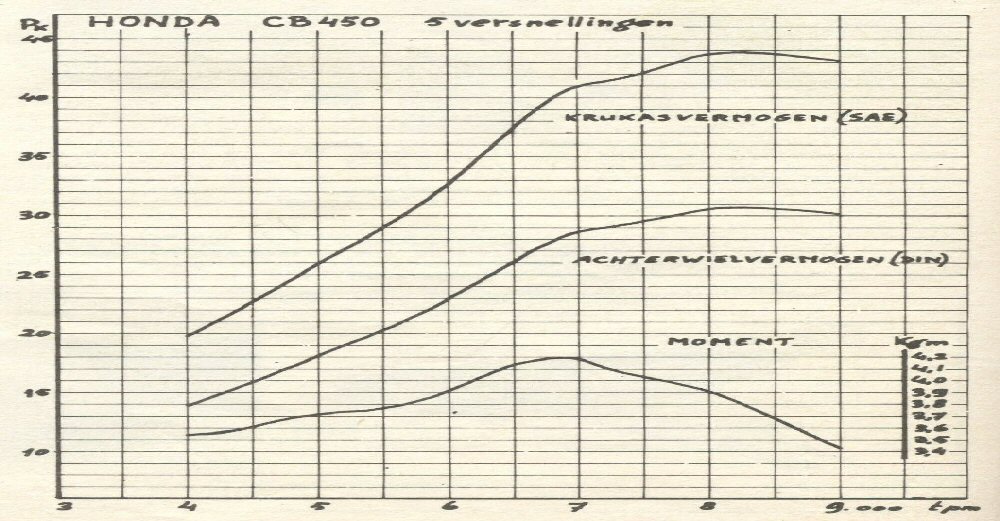 We should be aware, that my curve is from a CB450 K0, the curve from the article is from a CB450 K1. In the literature the K1 has a higher output then the K0, 1 Hp (If I take the K0 as a reverence, the K1 has 2,3% more power).