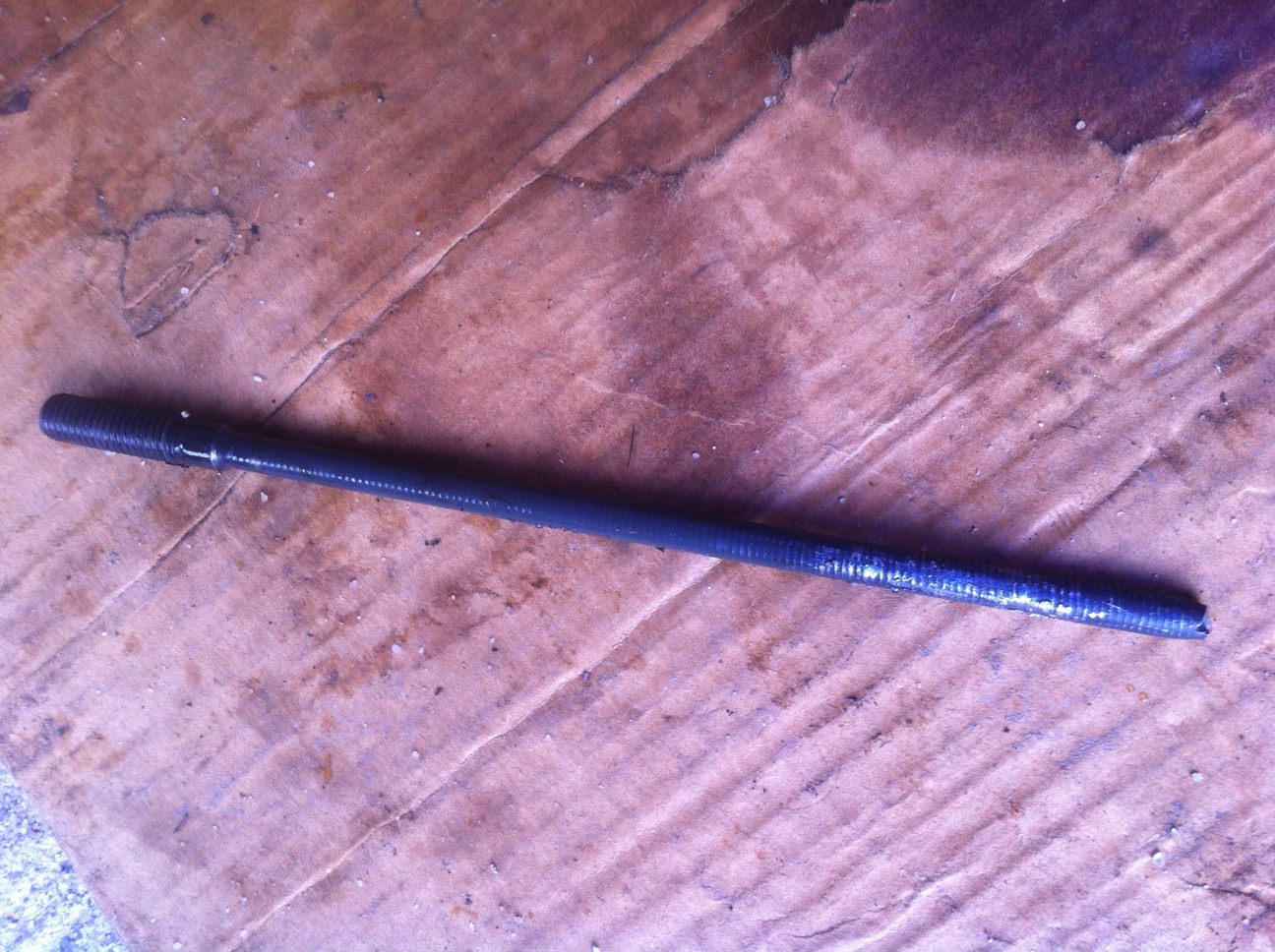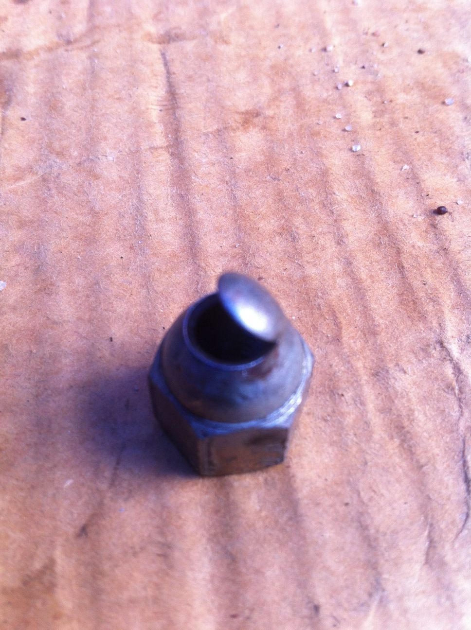 the stud snapped in two and shot out through the top of the acorn nut!
