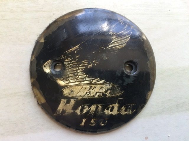 As I started to get all the bits together before reassembling the bike I found the tank badges needed replacing. I checked all the usual sites and couldn’t find a suitable replacement, in fact, I did find a pair of original badges with what the seller described as a couple of cracks. One badge was broken in half and he wanted $95 plus shipping. I decided my badges weren’t that bad after all so set about removing the black paint and what remained of the original silver. Most this just picked off with the fine pointed scalpel, I then painted all the black areas and while the paint was still tacky laid the badge on some cooking foil, this I gently pushed into wing detail and then trimmed off the surplus. They’re not perfect but the second came out a little better as I used a wooden cocktail stick point the apply paint to the very fine detail areas. These will do until I come across something better.
