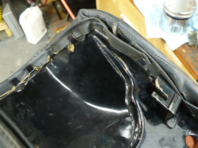 The only piping on my seat is in 2 places, one piece where the backrest piece of suede meets the flat "sit your butt down" piece of suede and the other is on the radius of the backrest piece of suede. I also have the 2 sets of tabs like on 56oval's. I believe mine to be an early to mid 60's issue because there is no part number or model number stamped in white paint on the bottom of my pan.
