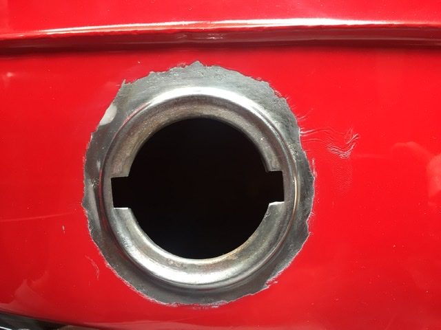 As promised, an update on the paint repair. What happened was the paint around the filler cap pickled up so I had to flat it back and respray the damaged area. This was no problem and to avoid it happening again I also applied a few coats of fuel resistant lacquer. My mistake was in not following the instructions to the letter. I’d used this product on my sons tank with great results but this time I just applied three coats of lacquer without waiting the 15 minutes between coats. The result was the lacquer never really hardened, it was touch dry but would not polish. I left the tank till now hoping that a six month rest would harden it it up but no, it’s still soft so I’ve no choice but remove the lacquer and start again.
