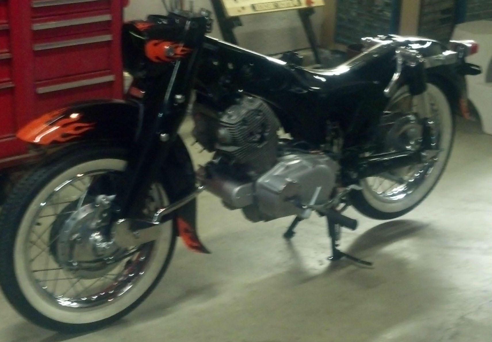 1st, I wanted to maintain as close to the stock look as possible. This was stock on mine, the change was probably when they went from the 63 CA77 to the 63 CA78, so there wasn't any change, just more labor. The handlebars are as close as I could find other than NOS or used- which are usually less than desireable or cost too much (see 3rd reason.) And, yes, I know the flames aren't stock, but sandpaper and a little clearcoat could correct that if I wanted to.