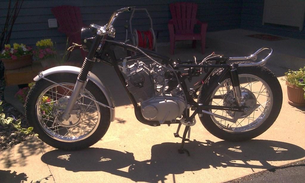 More progress made. I have the carbs all put back together and on the bike. I also have the brakes mounted and a few other things done. I am currently working on the wiring harness. I had three of them from bikes I had torn apart and in the process of making 1 good one out of those three.