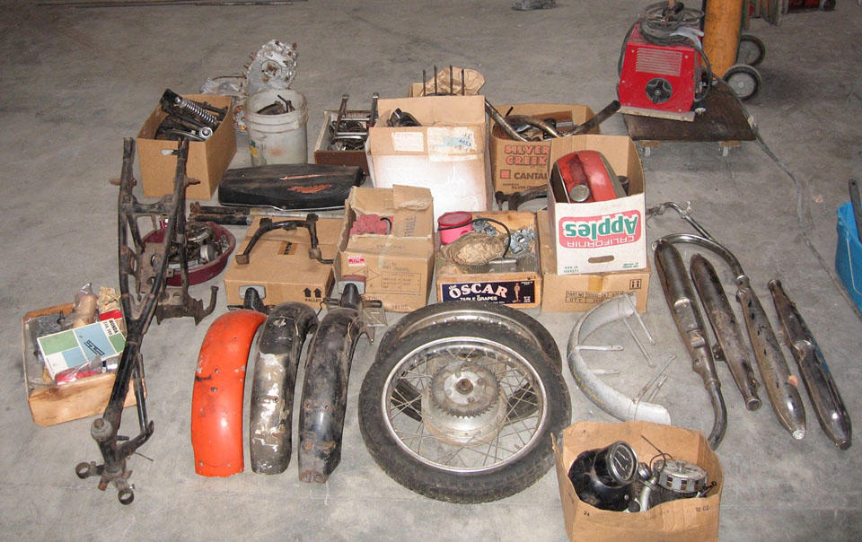 OK, so this will be a little irritating to some but if you can believe it, I forgot to cancel my ad on Craigslist and two days after I bought this bike I got an email form a guy with a completely disassembled 63 or 64 CB77 with a bunch of extra parts for $ (use your imagination, then multiply the amount you imagined by a scaling factor that turns out an equivalent amount of money in 1975.) My Tacoma was filled with parts! He called me two days later- seems he found three clutch side engine covers- one early one without 'HONDA' script, and five brake plates with shoes and linkages. Thanks.