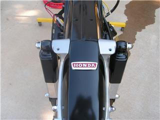 I installed the wiring harness and tested all the conections. I have also added a few other pics to show the color scheme. We have a process at work called "dura-color." It is a 2 part system that we use to fill spaces like the "HONDA" logo. It is then baked like powder coat and is durable. Well I hope that all the pics will post.