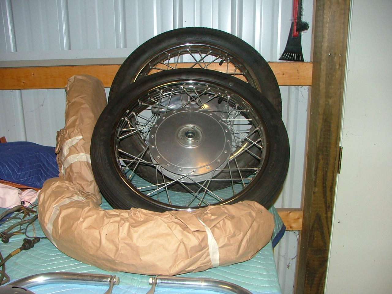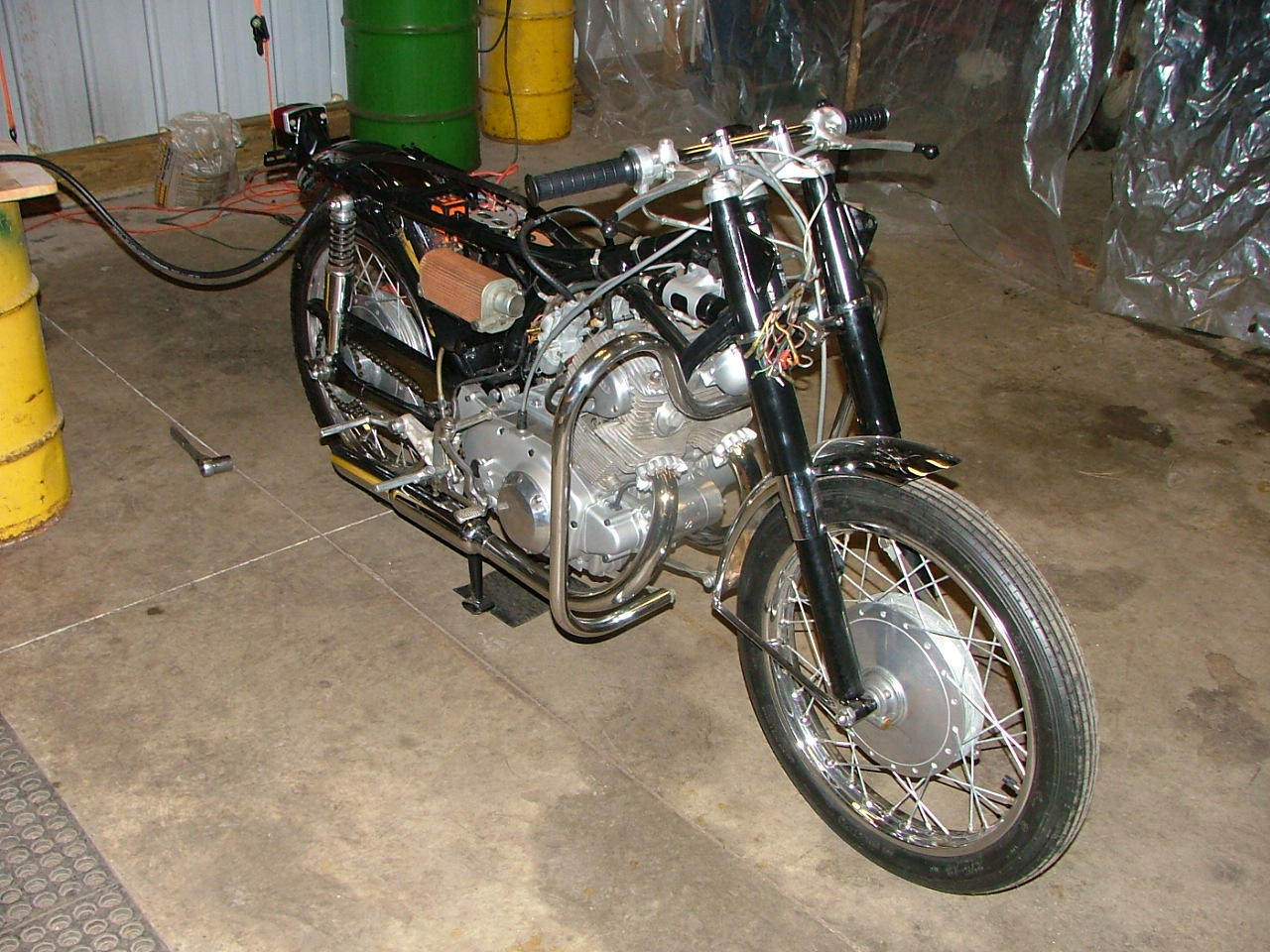 Made some progress , however slowly. I'm pretty certain this was originally a Black bike. However limited funds is going to keep me from restoring it to original condition.Which is Ok cause I plan on ridin it . Got alot of parts cleaned up and painted. Engine is apart and I honed the cylinders and fit the rings last weekend. Managed to get the trans X-ed thanks to the in depth posts and opinions. Got the fenders rechromed. Cheng Shins are all mounted up and ready to go back on. Having a blast. Thanks to all aboard who's info has saved me time and headaches. Brent