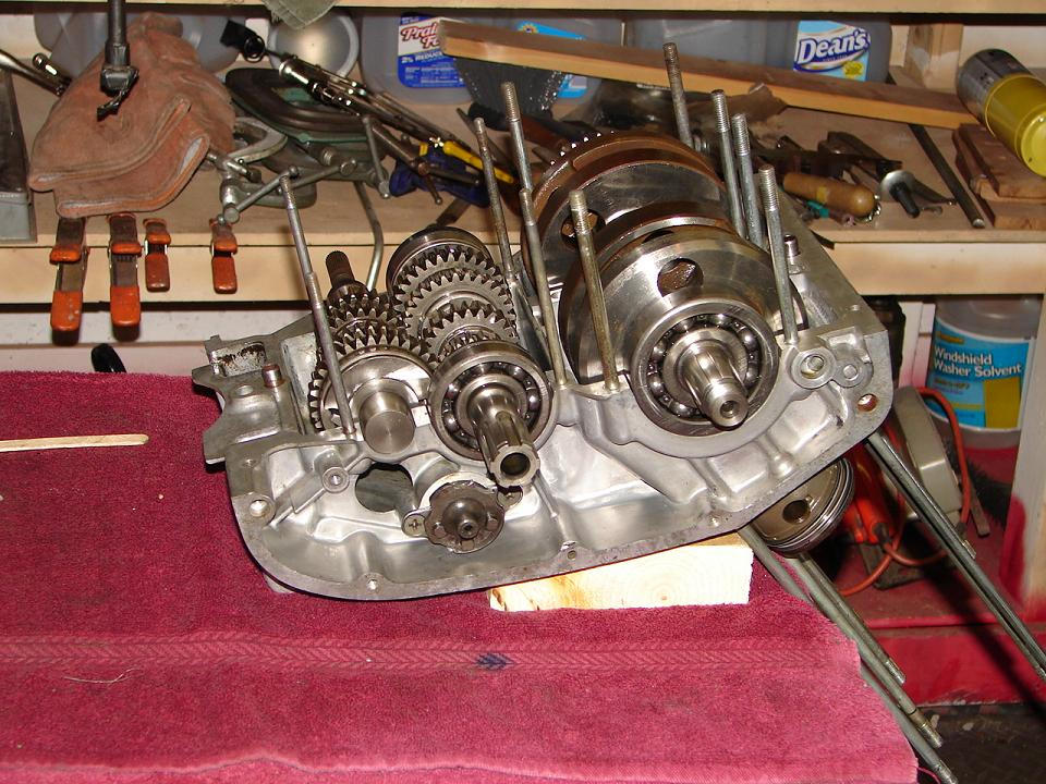 Sent a PM to caldreamin, but thought I'd elaborate. The comment about crankcase assembly came after reading a casual comment in one of LM's replies to someone. In it he mentioned putting assembling the crankcase components with the top half of the crankcase upside down on the bench, and then placing the bottom half on the assembly and buttoning it up. It was an aha moment. Doing it this way means you can align the shifter forks and make sure everything is in place and works. Then you put the bottom half of the crankcase in place and bolt every thing down after sealing properly.