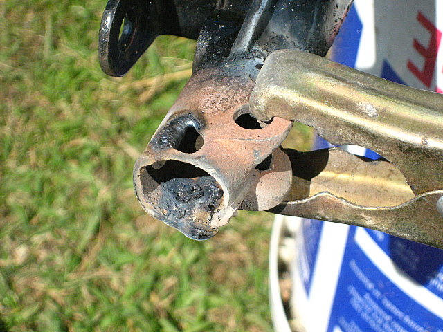 My frame looks like it has had a hard life and at one time the grab rail has been welded on. Additional bolt holes have been drilled in the frame which combined with corrosion and a few cracks were not really helping the integrity of the rear end. In several places brackets have broken off, so I have been busy with the welder, making up parts and filling holes. The PO had powder-coated the frame on top of all sorts of mess so that is having to be stripped in the places I'm working. Only the stop-lamp bracket to be re-created and welded on now - should be ready for paint again soon.