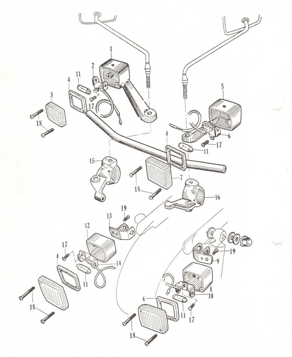 Old style winkers (square type). There are two types, at least two types front winkers. One type with an extra glass on the top, so you can see if it's working, and one type without that extra glass on top. The winkers with the glass on top are used on the first models, and where bigger but the same style as the CB92 winkers. The winkers without the glass on top are used also early cb's, at least with the old style front fork. These first type is very, very rare, and seldom seen. In the parts manual these are pictured this way :
