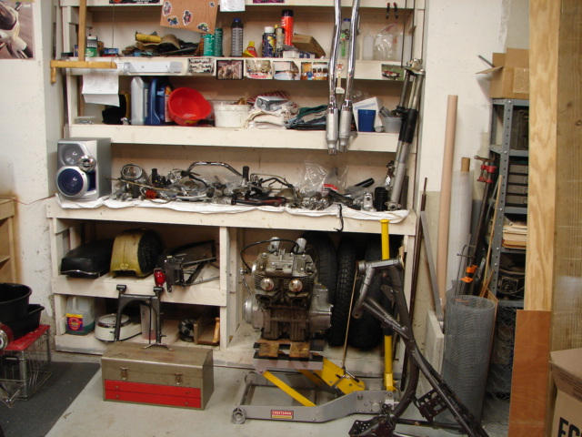 Frame is stripped and ready to go get blasted and powdercoated. Wheels look good, rims look good, Will probably source a racing style tank (any suggestions as to what will fit will be appreciated.) and a solo racing style seat.