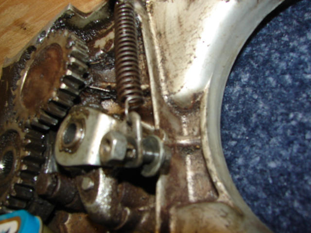 Davo: I was sort of halfway hoping the sideplate had sort of stopped to sightsee and visit other parts of the engine and maybe stay with relatives on the way down, and that I could fish it with a magnet. Oh well, I was going to pull the whole thing down anyway. You're right. It has to be resting beside the oil pump for sure. This is a small matter: the good part is the cylinders and pistons look pretty decent.
