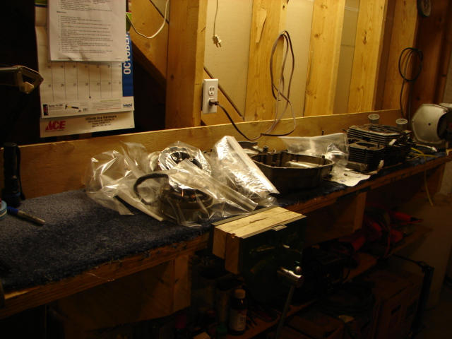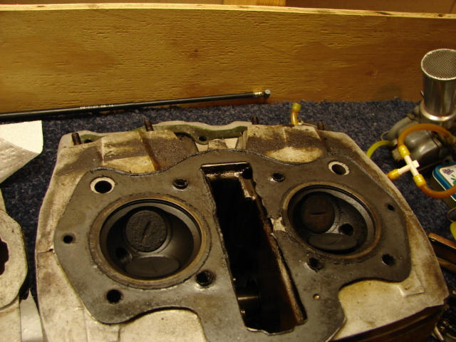 I have my Goldwing running and out of the basement. Serious work now commences. I pulled the head and cylinders tonight. I see that the head gasket is blown. Now I know why the po sold it to me ( aside from running into something fast enough to bend the forks.) I also have good bores and pistons and rings. Pistons are marked 0.75, so I can assume I'm on the last rebore. Glad to see they look pretty nice. Lots of odd nuts and hardware. Lower back corner of right side cover broken off ( not fatal). Did lose the sideplate from the master link in the engine even though I had the opening packed with paper towel. I was going to check everything inside anyway, right ? Everything that I can see inside looks good. Will try the grinding deal on the cam chain tensioner-its pretty hard. Will glass bead everything after its stripped and inspected.