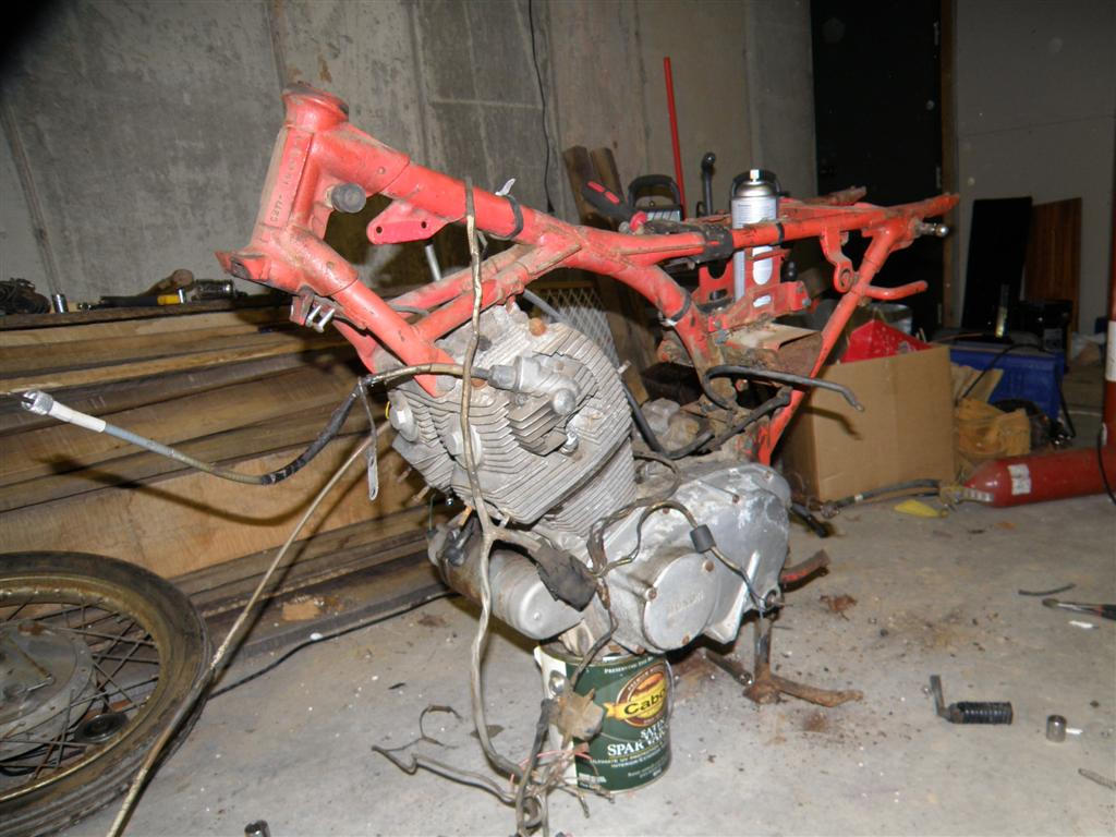 Thanks e3steve! I already have the tank off and alas the year tag on the harness is long gone. I have the bike down to the bare bones now and am removing the forks. It looks like someone had removed the front wheel in the past and put it back on backwards! Didn't even have the brakes hooked up or anything. I took pictures of all the wiring in the headlight before I cut it for removal so I have a record of what went where. The speedo cable wasn't attached nor were the light bulbs installed in the speedo so I am guessing that the speedo didn't work.