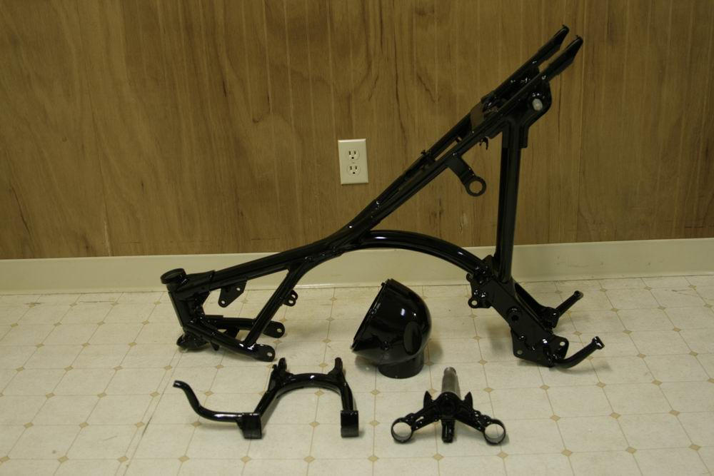 12/12: The powdercoating is done! I powdercoated the frame, swingarm, center stand, headlight shell, bottom triple clamp and the tank bracket. Looks like a great start to a cool project!