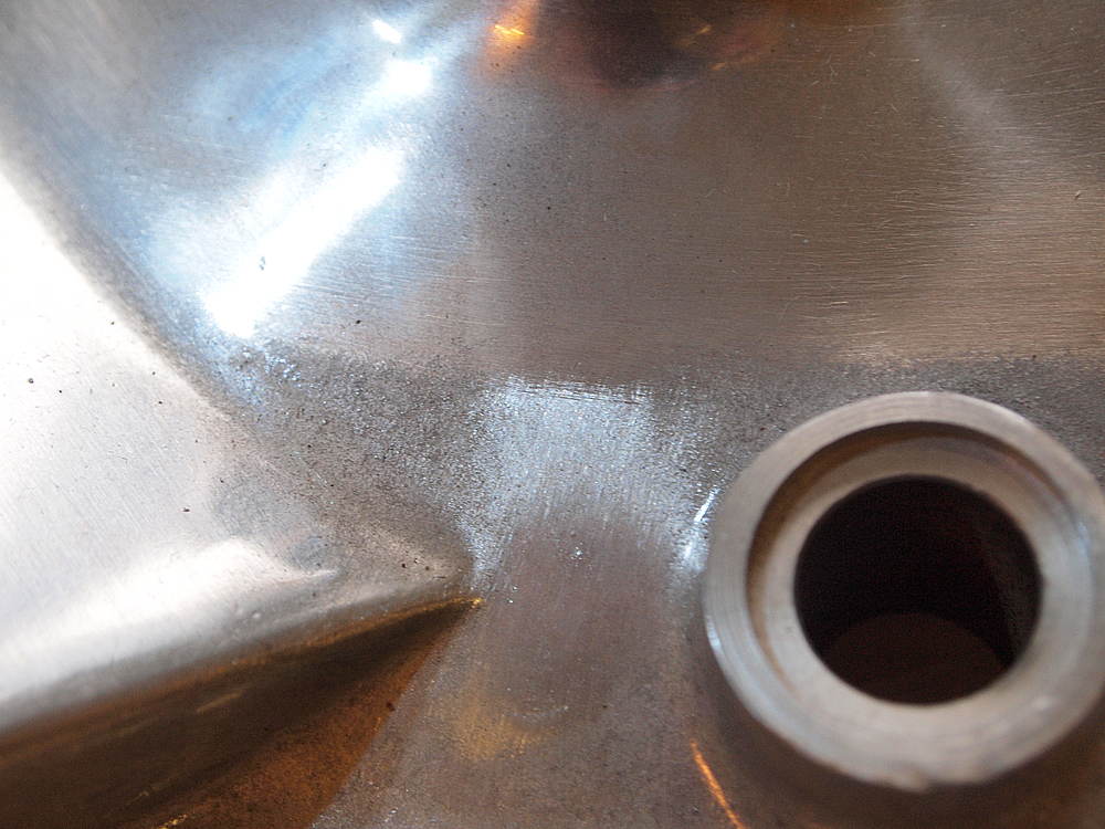 I took a pic of a shock support plate from my '64. Notice how rough it is? It hasn't been polished. My guess is it was just painted silver.
