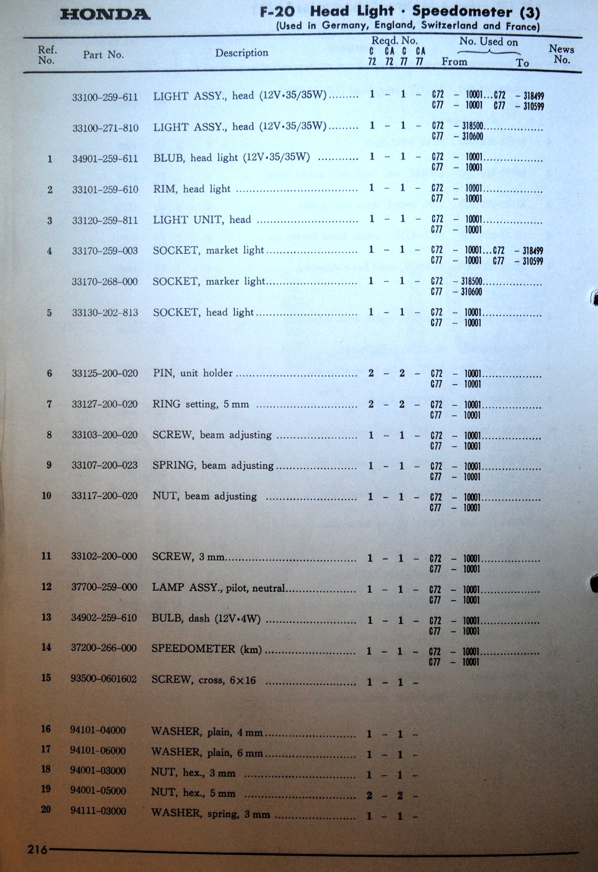 The ’64 parts manual just lists the 3 different headlight units. But the ’68 parts manual on the Bill Silver Restoration CD tells more:
