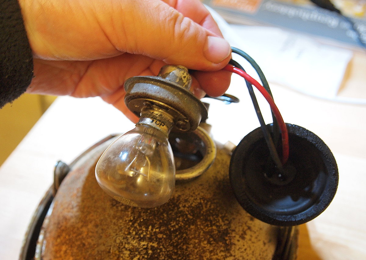 The next three pics are my C72 lamp in various stages of assembly. My rubber cup is badly perished but does still fit over the ring and holds the bulb holder in place.