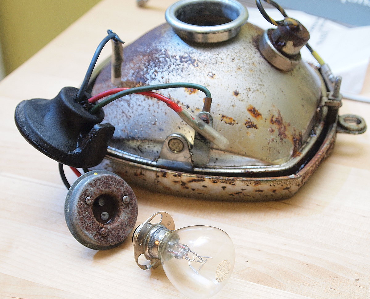 My ’64 parts diagram lists 3 headlight units. 1 sealed beam and 2 that use the APF-type , replaceable bulb. I thought my unit was the #3 unit, the diagram of which I posted above. In looking closer, I think I actually have the #1 headlight unit, the diagram of which Graham posted. But, I think I have the socket for the #3 unit which appears will not fit in the #1 unit.