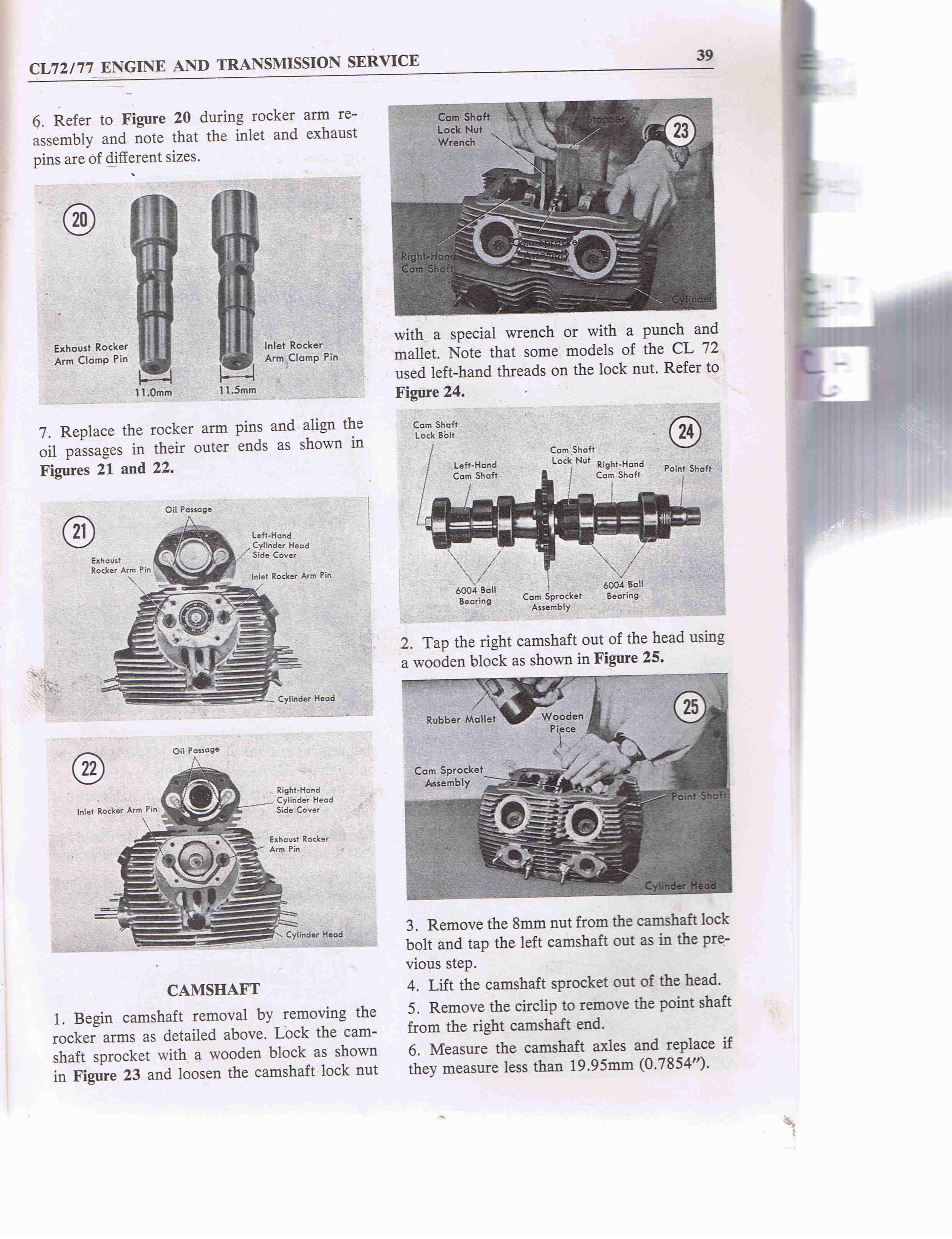Thanks for the info, however, I have already done this. I have hit the nut on the end of the left cam shaft which pushes the left cam shaft into the cylinder head and there is no space then to angle the cam sproket and the left cam shaft with bearings to pull it out of the center of the cylinder head. (See Clymer manual descriptions below). I also have the Silver books and there is almost the same description there. Step 3 and 4 infer the separation of the cam sprocket from the left cam shaft.