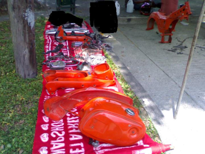 Well, my bike's progress is kinda slow at the moment due to some constraints. The frame will be needing some surgery and may take a few more days before its full recovery. Meanwhile, I'm trying to get as much work in as i can, in between my 8 hour job and availablity of resources. I'm personally cleaning up and painting the shock brackets, hubs, left and right handlebar controls and center bracket.