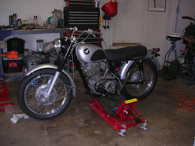 Not yet Ron, Getting the bodywork painted in a week or so. Got the tank sealed last weekend. Built a truing stand for the rims (See attached photo).