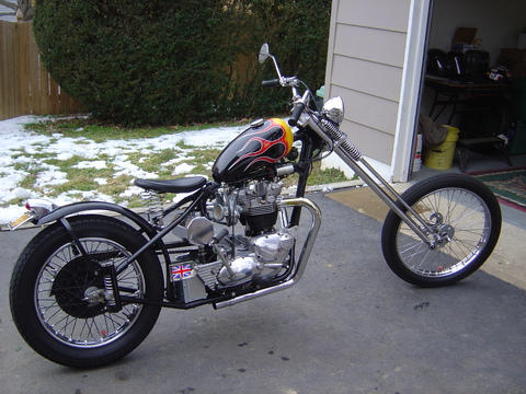 What a nice collection of vintage British iron you've got there. What's the story with the chopper, btw?
