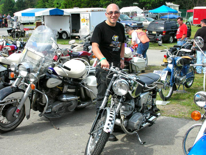 Well just got back from Rhinebeck this morning (730 mile round trip), and overall the trip was worthwhile. There was a VJMC booth there, and Stuart Covington had a few ultra clean machines, in addition to some other VJMC members. I think I was the lone SuperHawk in attendance, as the event was generally awash in Harley and Indian. Sunday was the judging, and I entered the machine in the 'Period Modified' category (they didn't use AMCA judging criteria for this category, as the 'points' would not have applied), but I didn't get anything...oh well.