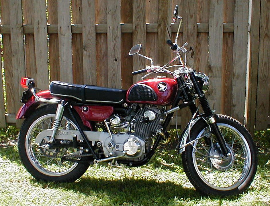 I am new to your forum, hello. I am currently building a 1974 650 yamaha but I came across a honda yesterday and tried to figure out what year it was. Well I have ended up here and I am sure you can help me. the VIN is CL 77 1024246 the # on the engine is the same. It was painted but the original color is a burnt orange color. What would be a fair price on what it woud take to restore this bike to running status. I know I know it depends on its condition. ok I will need to completely tear down the frame and motor and start over. I'm not talking about an all original, exact replica, I just mean a bike that looks good and is reliable and a machine I can cruise the gravel roads on and have fun on. I would like to think in the range of $1200-$1500. is this a fair guess. Remember it will need a motor rebuild, frame bead blasted, new rims,tires,cables,seat cushion controls, tail light different bars, and wire harness. It has been in a barn since 1974 that was damp and dirty. The motor does turn over though. If this is a 1968 model I might make it my next project since that is my birth year. Thanks for any and all input