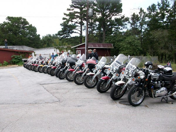 Here is a group shot of the Rally. There was a giant antique car meet and a gathering of the Vietnam Vet Riders in Eureka Springs that same weekend. The Harley riders still outnumbered us, but we drew the biggest crowds. The first comment was always, "I didn't know Triumph was still making motorcycles."
