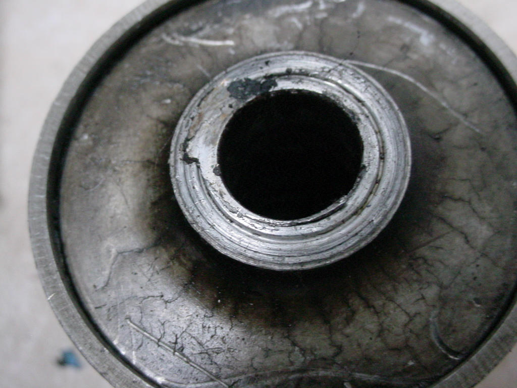 here are a few pic's of the oil filter from my 64 cb72 it looks like it froze on it's shaft at somepoint in it's life and got very hot anyone see this before? what caused it by the way the washer was on the outside stuck with melted aluminum on it. also the sprocket is able to turn on the housing.