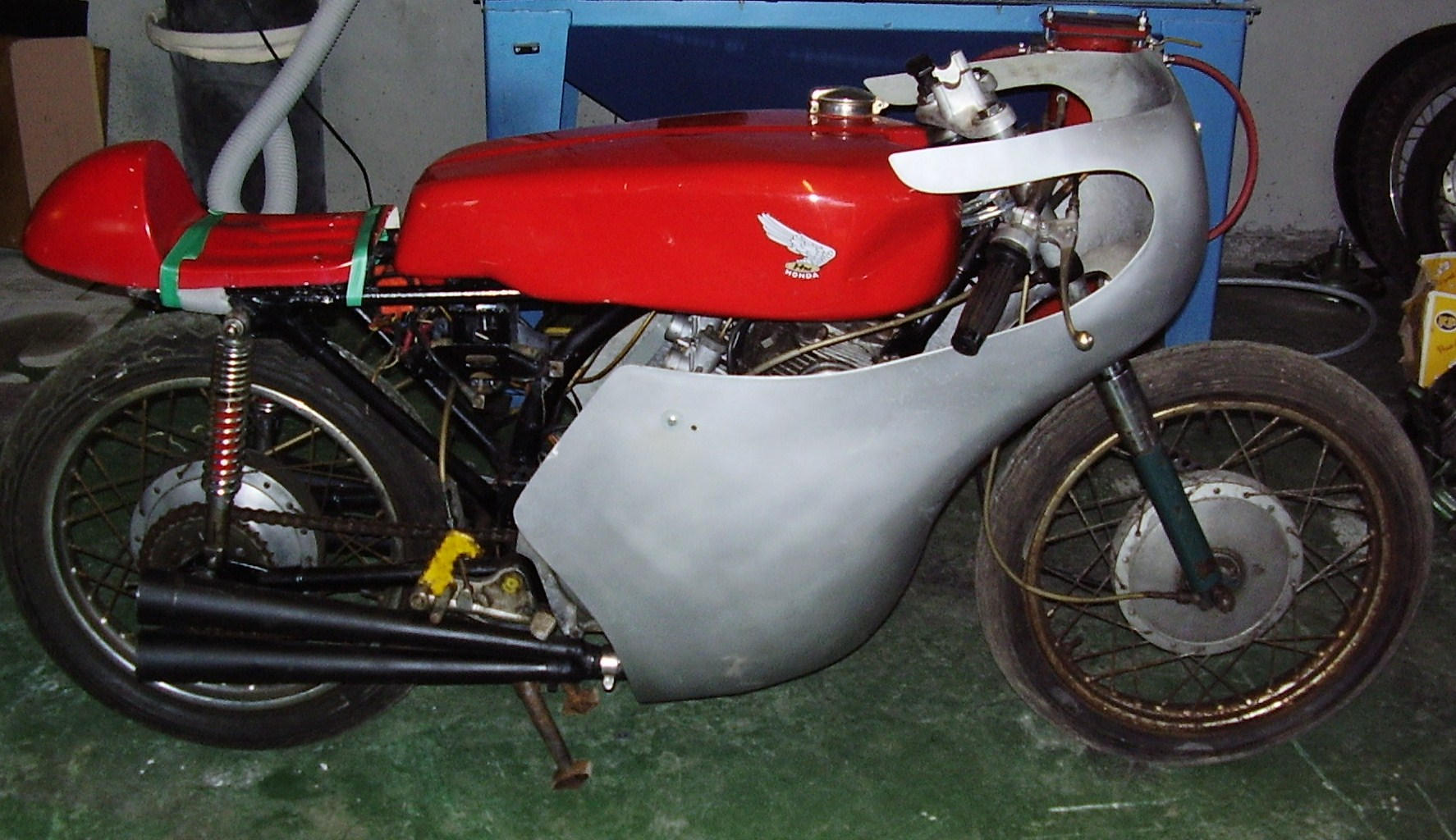 Hello got this bike from Scotland when i bought three bikes one restored and two for spares . This was one of the spares . It has two into four pipes with what looks like an early honda fairing very heavy fiberglass.