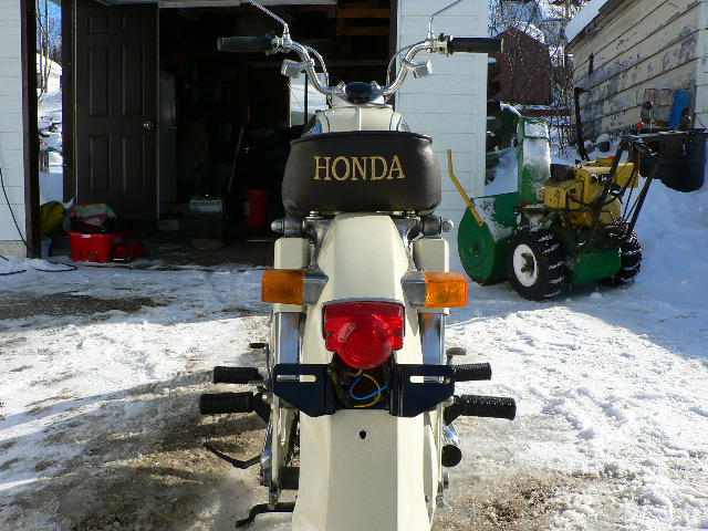 Found this in an overgrowen orchard covered with a tarp. All complete except lower chain guard and mufflers. Every bolt and nut was removed in the restoration process including engine and trans. Serial # C78- 40024 Engine, C77,E40024. Bead blasted frame and engine. All paint is from rattle can. Undercoated and finished with recreational white. Exhaust high temp black. ( am still looking for proper mufflers ) Built bike using super hawk running gear that I was not restoring. Had to make small mod's to do this. Have shortened seat 8 in. and recovered by NU-VU in Marathon Ontario. Paul did a wonderful job. You can contact him at 807-229-1681. Approx. under $700.00 CDN to restore.