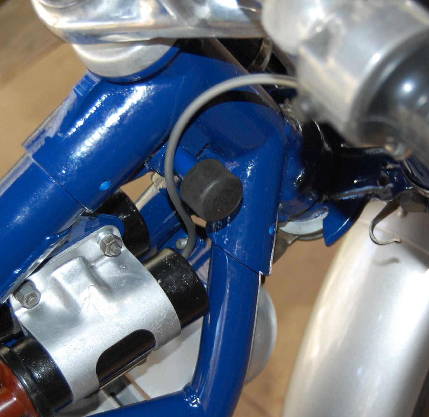 After rerouting the cable around the front of the headlight ear, I checked out a bunch of photos in h305 gallery and on Flickr, etc. Sure enough about half had it that way, about half the way I’d done it originally. The higher quality restorations mostly show it LM’s way. Less radical 90 degree bend that way, less chance of unwanted throttle response when handlebars turned to full lock.