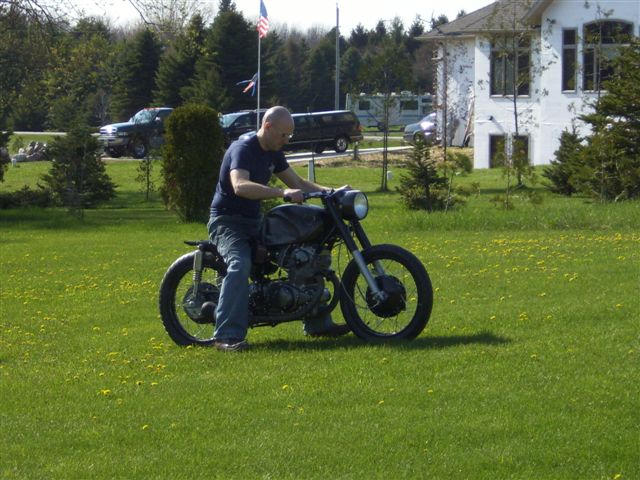 The rims and hubs are powder coated. I wanted them to be a little tougher than just paint, most everything else is paint though. The tank is actually painted with Duplicolor spray cans. It looks pretty nice (doesn't show up in the pictures very well though). Unfortunately the spray bomb paint isn't very resistant to gasoline so you have to be extremely careful when putting gas in.