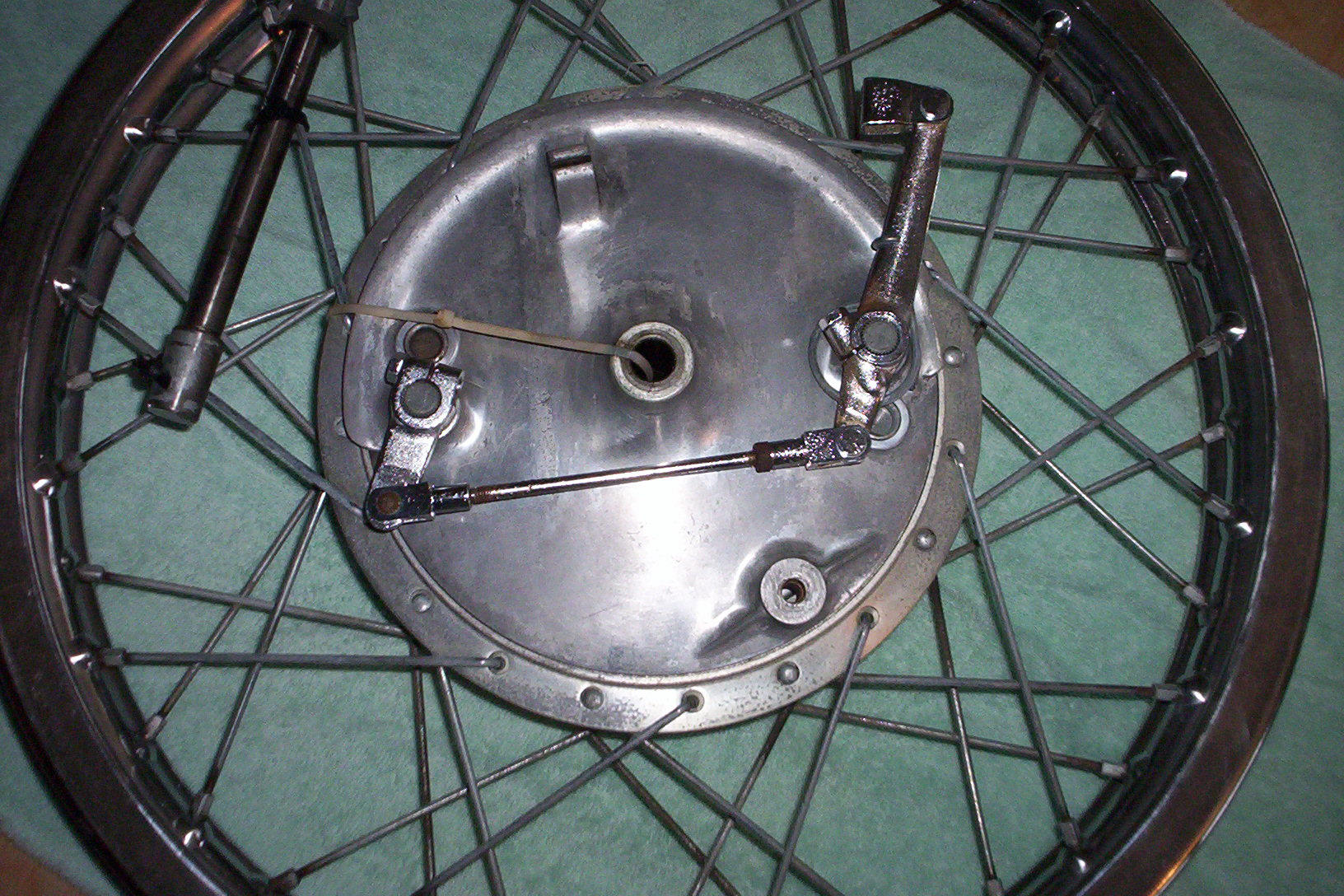 The attached photo is of a CL77 wheel but the following expanation still apllies: the spokes are installed alternatively in the hub from the inside (use the 45 degree spokes) and the outside (use the 90 degree spokes. The outside spokes in the photos are the ones you can see the head. Hope this helps