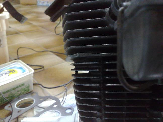Well, the oil was flowing as I discovered. Unfortunately, the oil was flowing out of the engine in between the head and the cylinder at the location of the oil passages and the oil seals. And it was really flowing, not dripping. Would it be possible that the seals were damaged during assembly? I was really disappointed, so I stored the bike for the rest of the year, until last week. I took out the engine again and pulled the head to inspect what was going on. At first I did not discover anything. The seals were still ok, and I used bondage to be extra secure. The head gasket was not damaged. What was going on??? I reassembled the head and then I discovered LIGHT! You can see light between the head and the cylinder!!!! On both sides, but not on the middle… See the picture….
