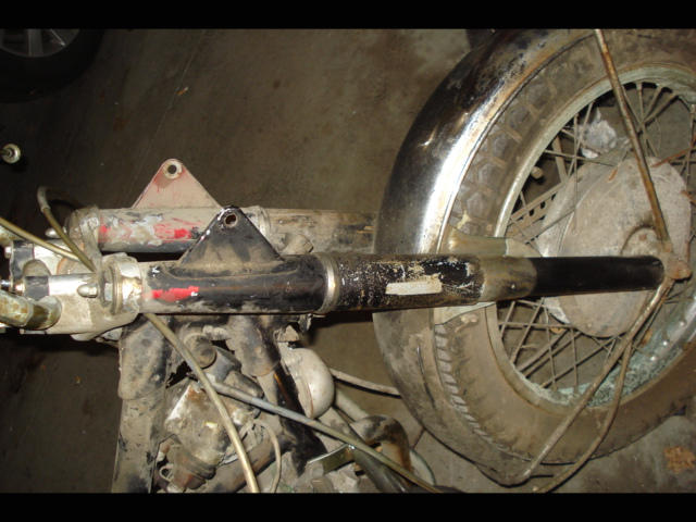 I bought the bike from a neighbor and friend, essentially he gave it to me. My friend bought it in 1969 or 70 and rode it until 76 when he stored it. The bike was free, I trust the guy, and the engine hums after 30 years..but there are some issues. I knew it was a honda, but it had some crap on it from unkown bike (fuel tank, seat, tailight, "engineered" headlight can) The frame is CB77, the engine serial number is long gone (undoubtedly some nefarious activity from two owners ago). I think the engine lower is a CB72, at least the magneto says so, but I really can't tell at this point. I have my doubt about the upper motor as it doesn't have a place for the engine hanger bolt closest to the rear of the bike, but all of the other mounts line up. I don't think the front end is CB at all. The yoke has an additional brace between the forks, with a small hole in the center(just right for cables and wiring possibly) and no lock or adjustment handle.
